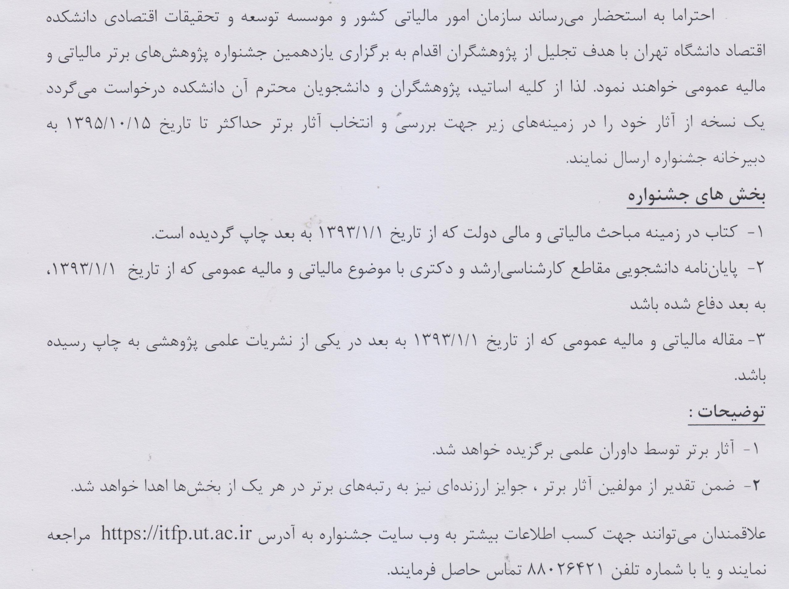 جشنواره پژوهش های برتر مالیاتی و مالیه عمومی